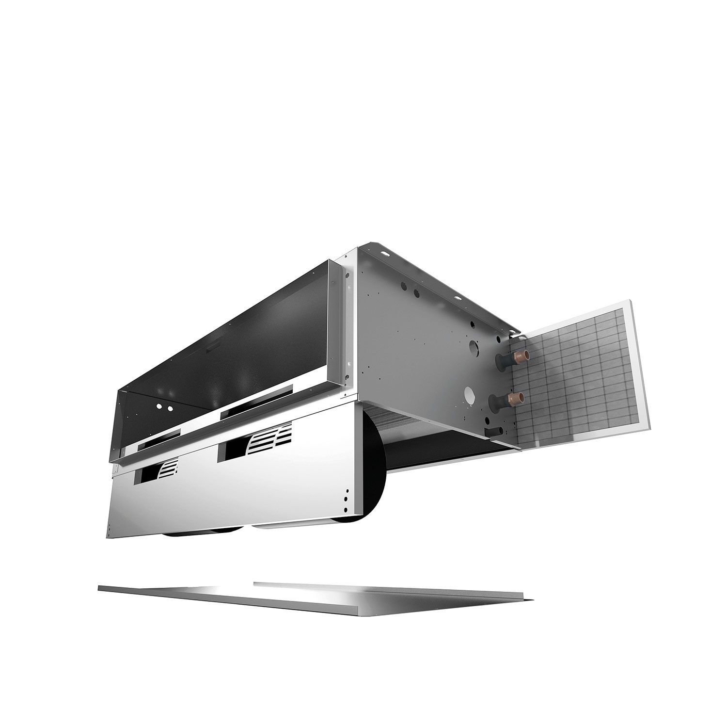 Tutti i componenti interni ed elettrici sono facilmente accessibili e non serve disconnettere i canali per la manutenzione ordinaria.